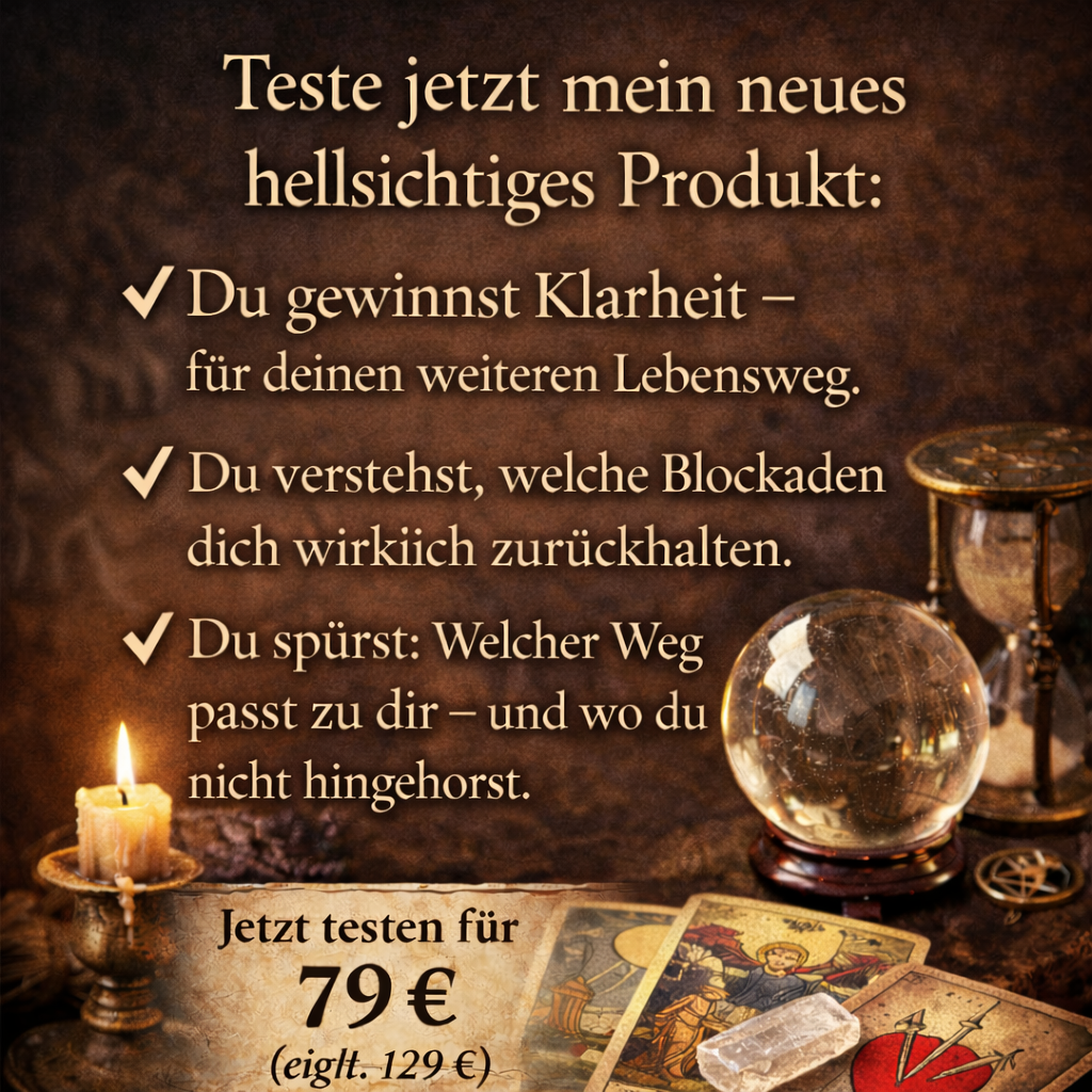 Diese Analyse ist dafür da, dich in genau so einer Phase zu stabilisieren, zu klären und wieder handlungsfähig zu machen – aus Tarot & Hellsicht heraus, aber so verständlich und bodenständig, dass du es im Alltag direkt nutzen kannst.